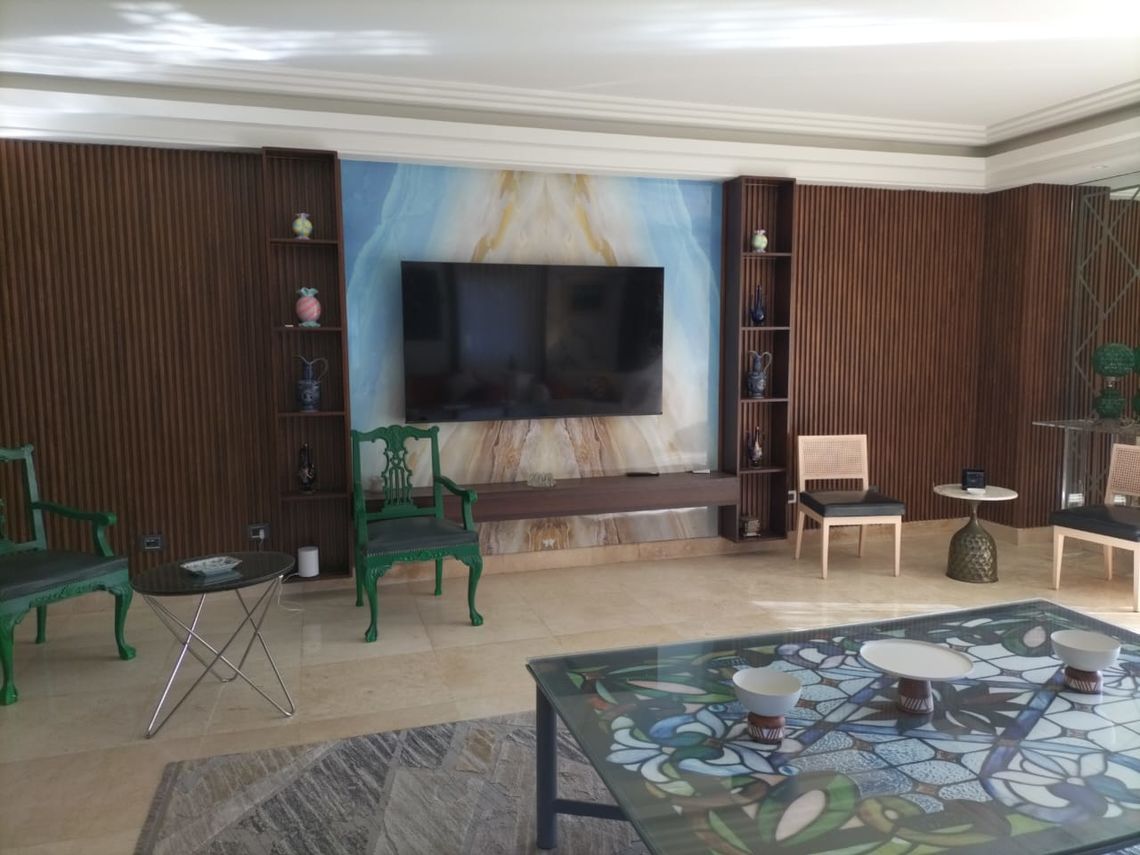 .Gypsum board decoration with indirect lighting and spots